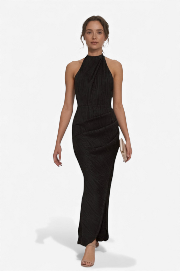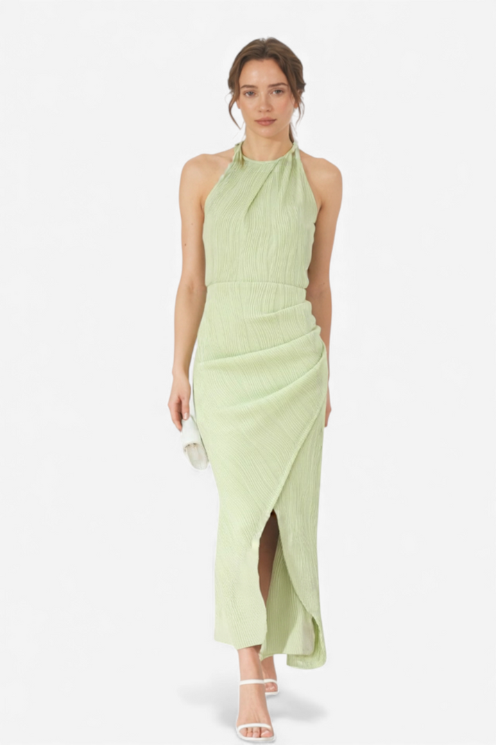 ELEGANTNA MIDI OBLEKA IZ NABRANEGA ŠIFONA