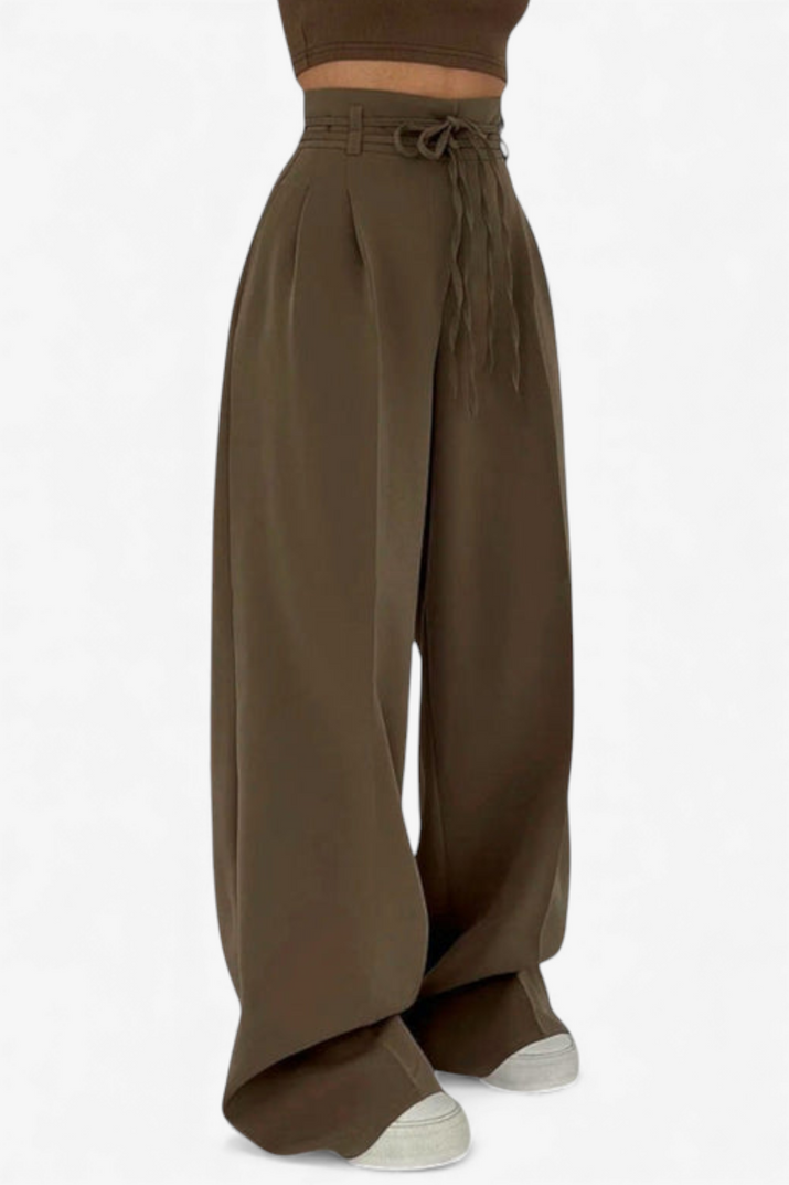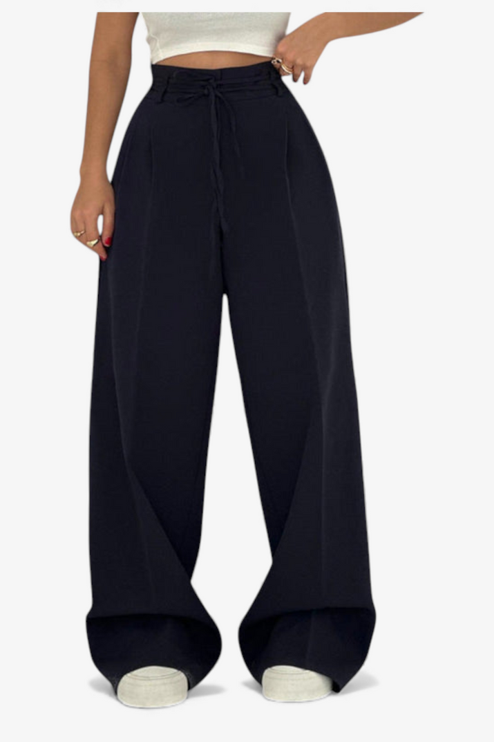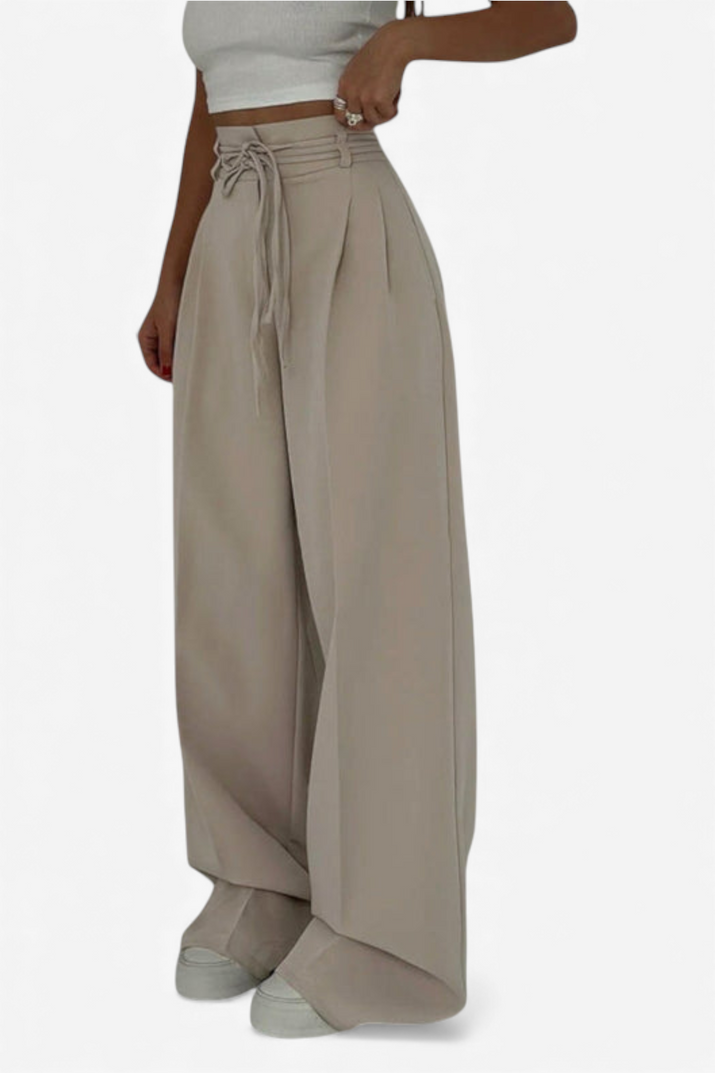 HLAČE WIDE-LEG Z KORSETNIM PASOM