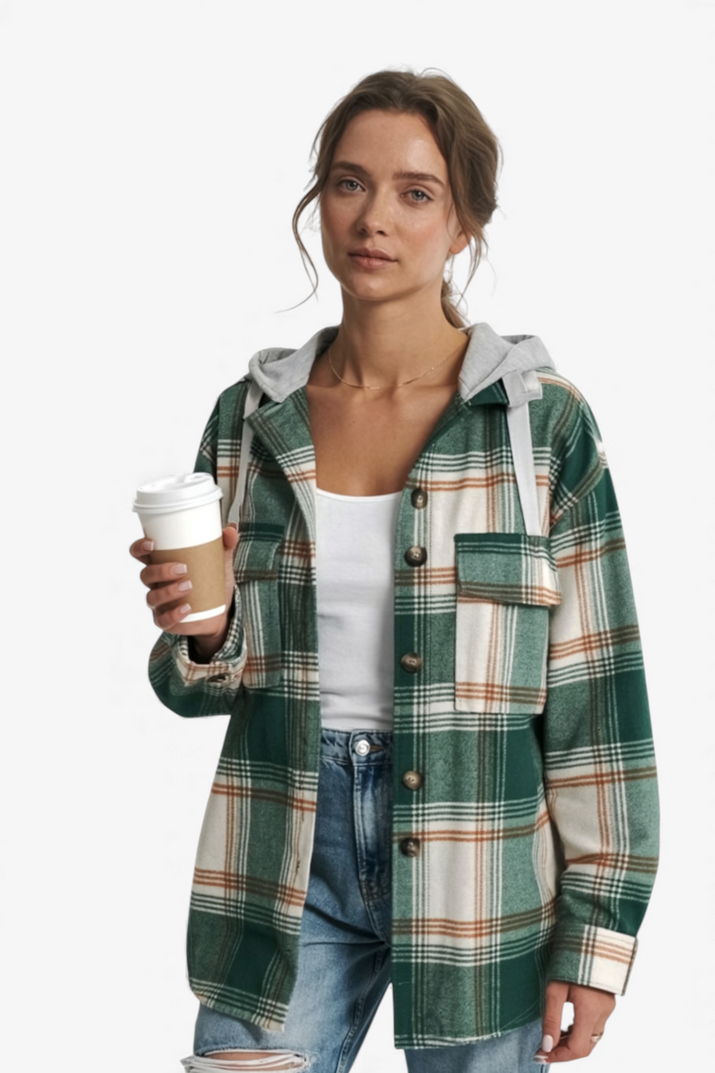 ODEBLOJENA SRAJČA S KAPUCO V PRILOŽENEM SLOGU